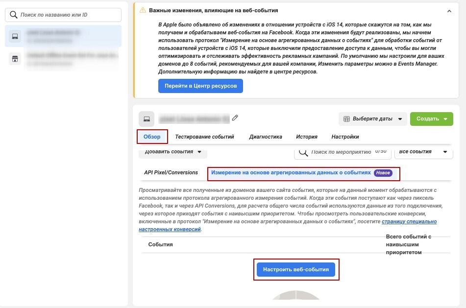 11) Переходим в Обзор -> Измерение на основе агрегированных данных о событиях -> Настроить веб-события