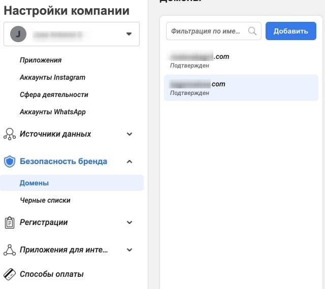1) Заходим в БМ -> Безопасность бренда -> Добавляем домены