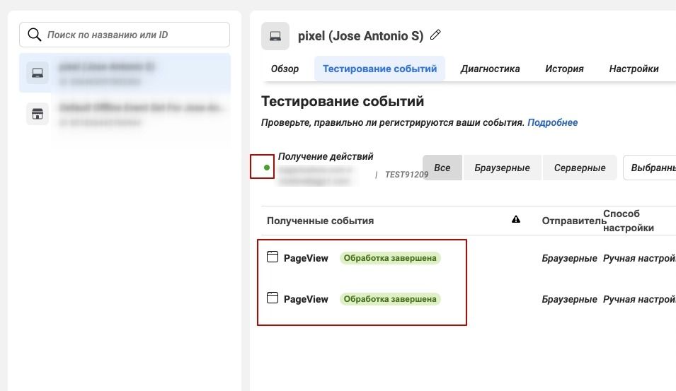 9) После этого ваш пиксель должен активироваться (загорится зеленым) и ФБ зафиксирует ваши заходы на вайт.