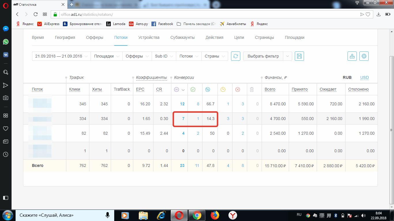 За вчера заработано чистыми 2260 рублей, хотя могло быть значительно больше. С АД1 решил больше не работать, так как знакомый прислал пот одного арбитрана, про то как он сам оставил заявки, подтвердил их и вместо двух подтвержденных увидел у себя в стате всего один. Судя по апруву вчерашнему, то меня тоже подбрили. С одного акка из 7 лидов всего 1 подтвержденный.