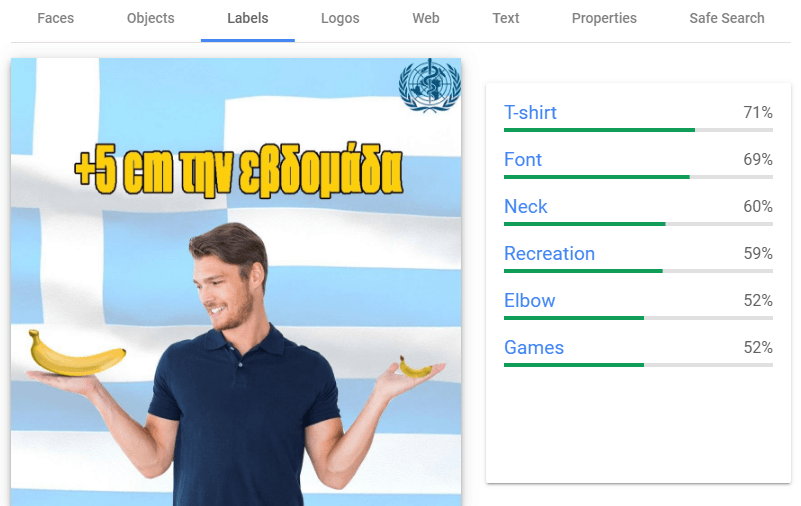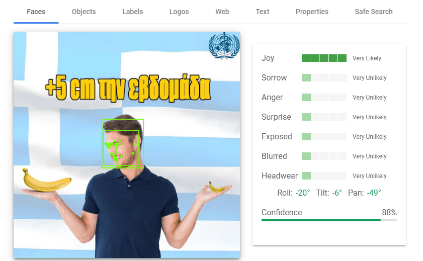 Сервис Google Vision показывает, какую информацию определяет искусственный интеллект на изображении. Он точно видит человеческие эмоции, одежду, текст и части тела.