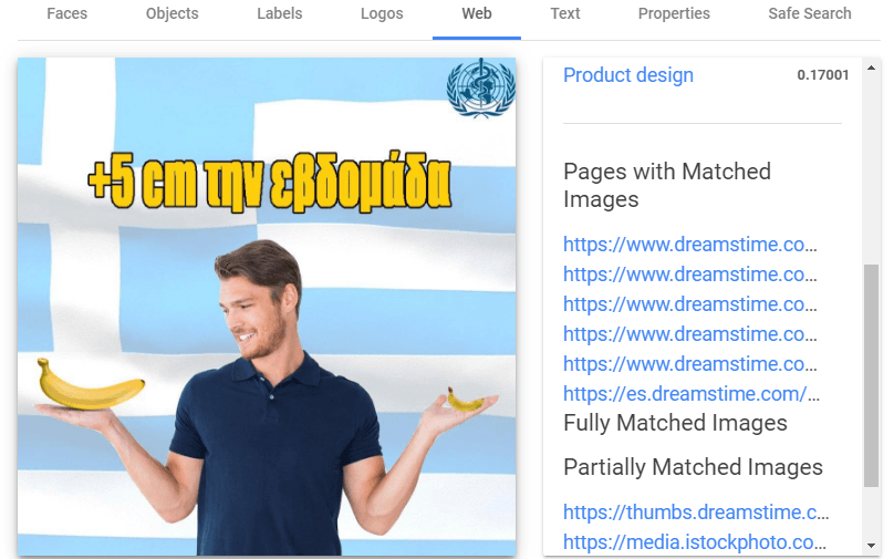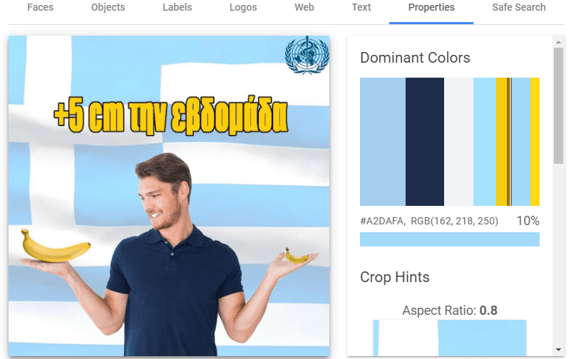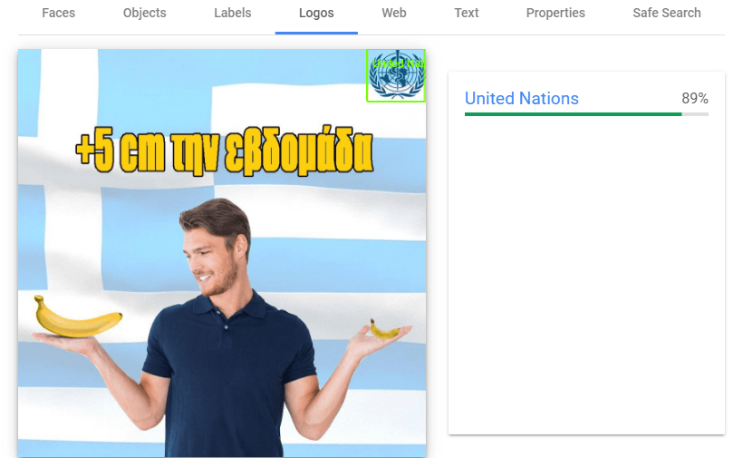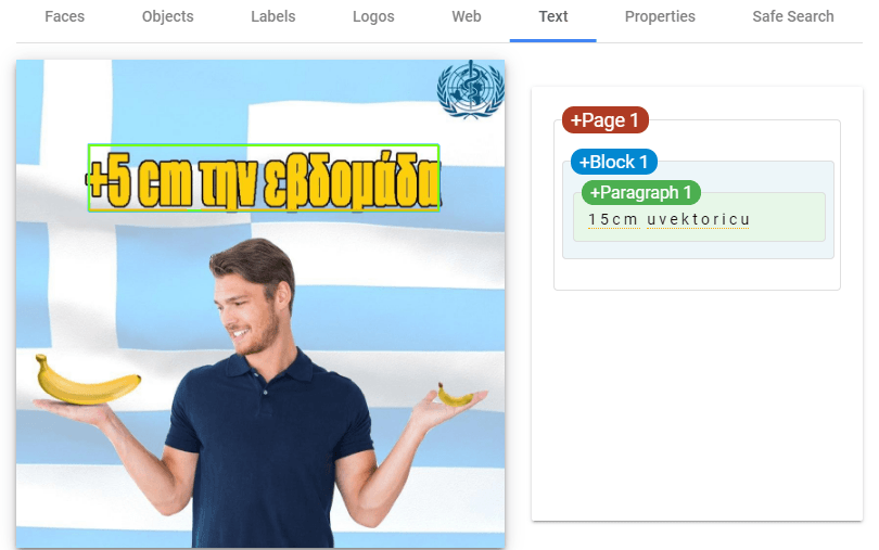 Здесь робот пытается прочитать текст на изображении. Но наш текст на греческом, поэтому определяется некорректно. На английском работает гораздо лучше.