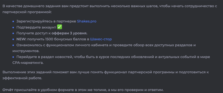 Выполнение этих заданий поможет вам лучше понять функционал партнерской программы и подготовиться к эффективной работе.