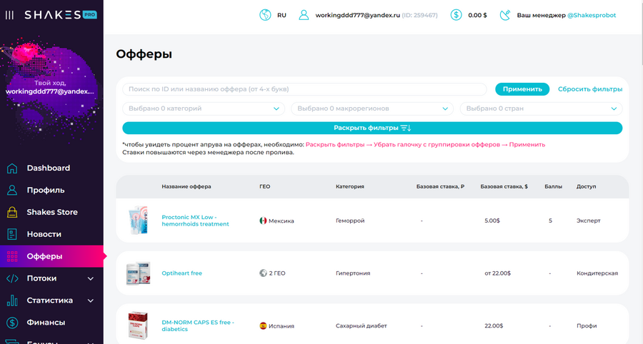 • Зарегистрируйтесь в партнерке Shakes.pro