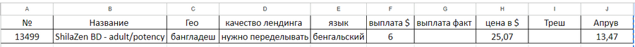 • Внести данные по гео, выплате трешу и апруву в гугл-табличку