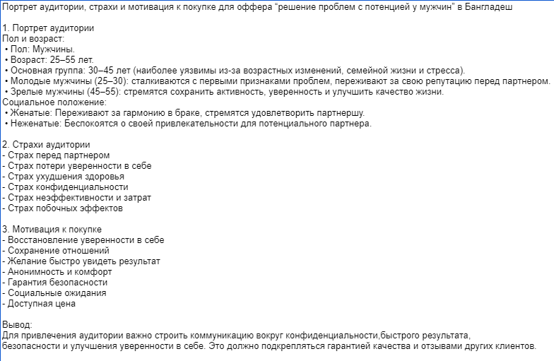 Привет бро, ну ты красавчик! Кстати посмотрел твой составленный портрет твоей ЦА, очень понравилось... Все структурированно и проработанно. Именно такие боли тебе нужно будет сделать в креативе и добавить CTA. "Эмоциональные проблемы" - вообще бомба. Если ты так все детально изучаешь, будет и результат. Давай к некст блокам и если что-то будет непонятно, всегда буду рад помочь. Удачи!