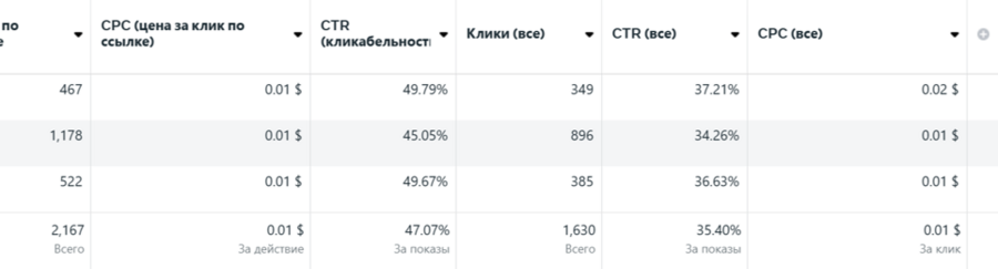 К примеру CPM высокий и низкий CTR, значит твой крео не заходит и FB не может найти тебе аудиторию.