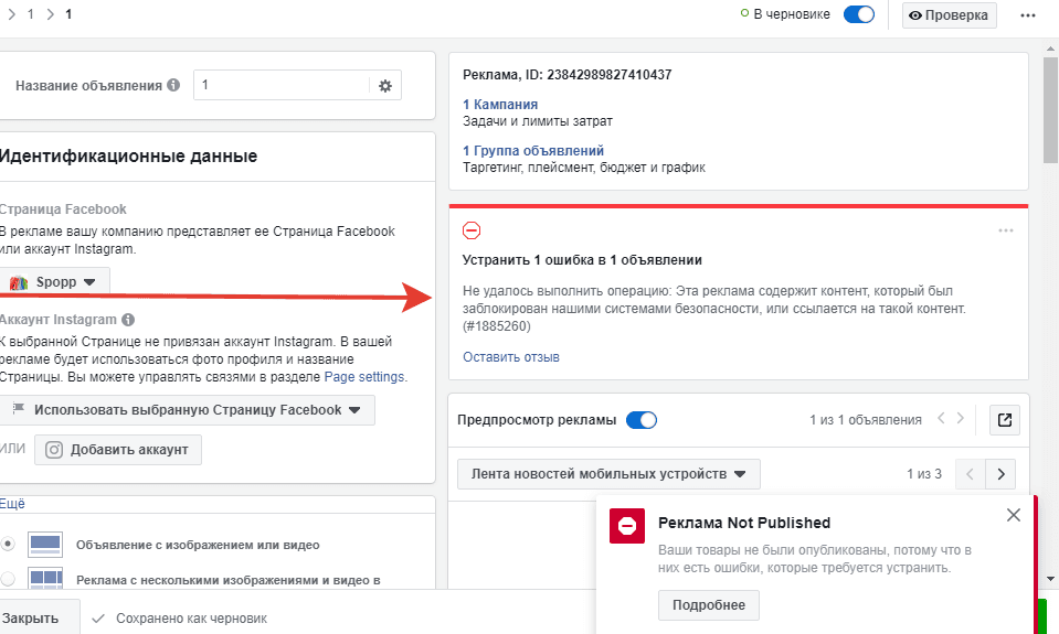 Привет ребят ,очередная попытка запуститься в фб и очередная ошибка. В общем после создания обьявления ,фб кормит ошибкой ,кто в курсе ,как исправить?