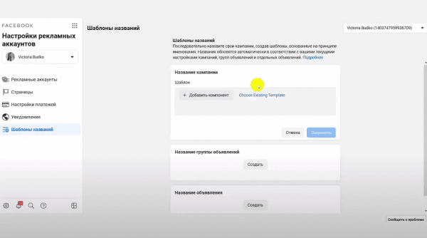 Это новая функция и она присутствует пока не во всех профилях. С «шаблоном названий» удается структурировать аккаунт, благодаря чему специалист легко сориентируется в Ads Manager. В особенности данная функция будет полезна, когда в аккаунте много РК и целей.