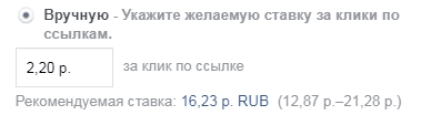 У меня на старом акке нормальная цена клика. А на новых акках FB заряжает рекомендуемую ручную под 200 рублей )))