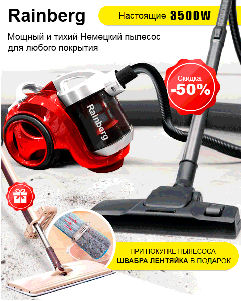 Офер: Пылесос Rainberg + швабра лентяйка в подарок.