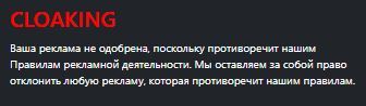 Клоакинг - это не клоака, как многие думают ))) Клоакинг, обход систем безопасности - сейчас такое прилетает почти всегда из-за креативов.