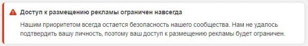 Мой трастовый акк отлетел, виной тому - я сам, а может и нет. Хотел запустить там товарку (вроде белая, крем для депиляции), после чего словил бан (непонятный какой-то для меня), написал в чат поддержки, разбанили, всё нормально и я дурачок решил запустить еще раз эту же кампанию и опять словил бан, в этот раз на вечно. Но на удивление (не знаю точно, но думаю так не должно быть), даже с забаненого траста я продолжал управлять расшаренными на него акками, но они потихоньку начали отлетать тоже. Потеряв несколько акков, я решил больше не юзать этот трастовый акк и начал уже пытаться запускаться на прямую с тех акков. Они уже были конечно подфармлены и немного с некоторых откручено рекламки. Какие-то акки отлетели, какие-то работали, были разные виды чеков, банов и т.п.. Где-то не приходил код на почту, где-то просило принять смс, а номера у меня не было, по-разному. Вот скринчики: