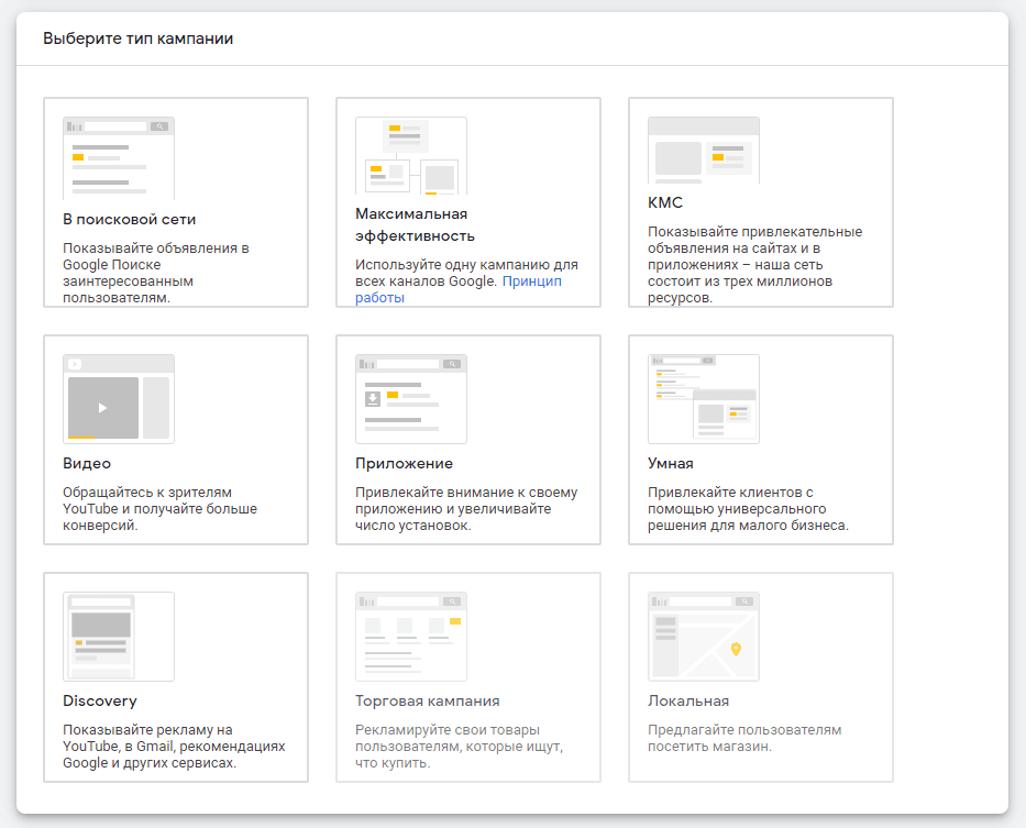 При выборе данного типа рекламной кампании реклама оффера демонстрируется на всех каналах сервиса Google одновременно — в Gmail, рекомендациях Google, контекстно-медийной и поисковой сетях, на YouTube и на Google Картах. Объявления дополняют обычные рекламные кампании в поисковой сети, основанные на ключевых запросах, и помогают привлекать новых пользователей, готовых совершить конверсии.