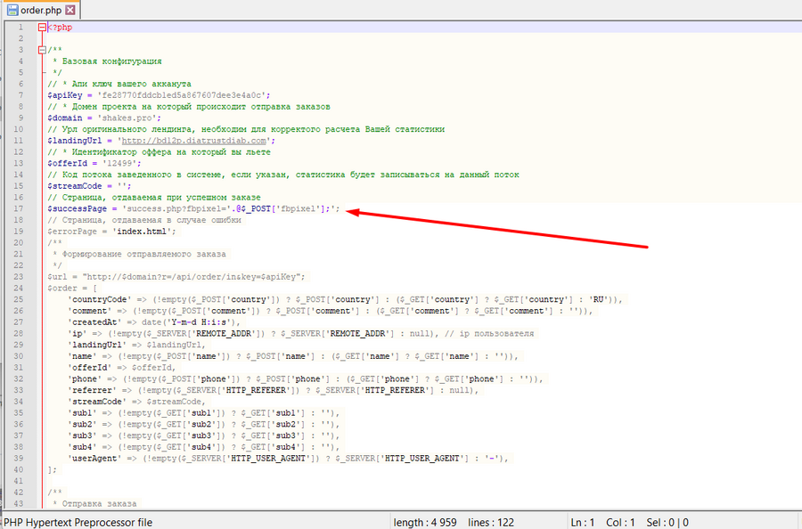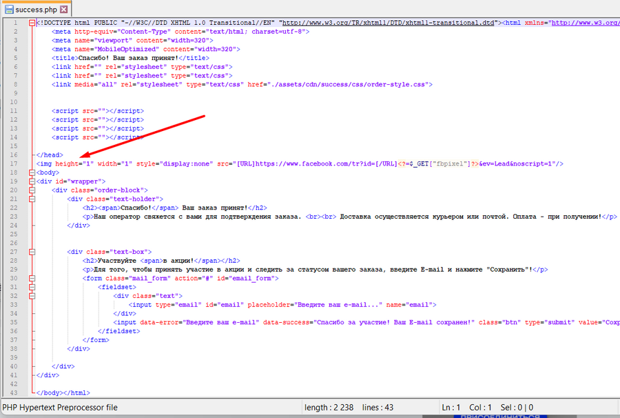 Ещё такой вопрос, у меня нет /head в файле order.php, куда вставлять короткий пиксель?