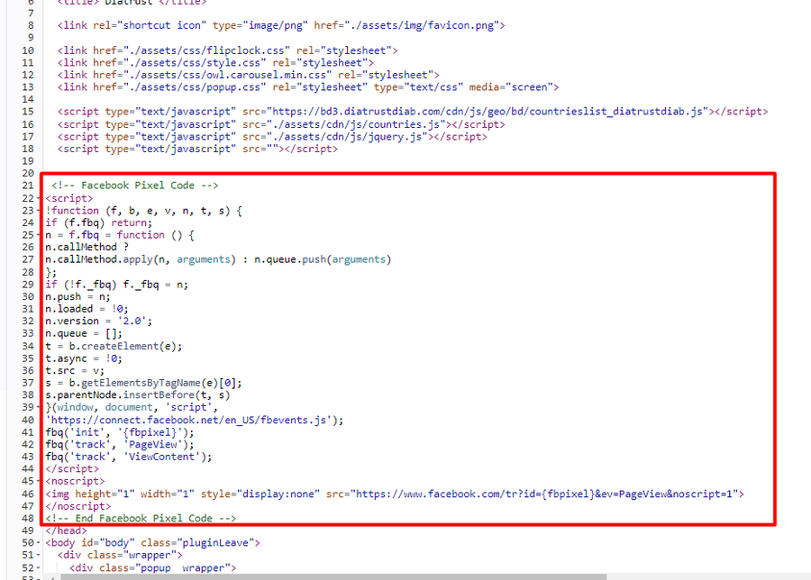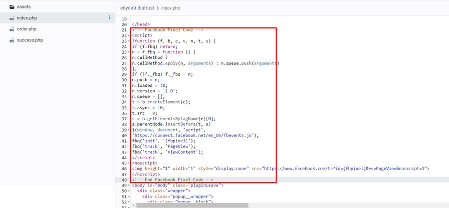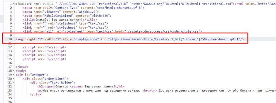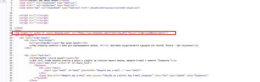 Бро ,я id пикселя в потоке прописываю, так же прописываю постбек и сохраняю поток. Потом из этого потока качаю архив с лендом, и добавляю твой код. Но отображается все равно вот так на странице "спасибо"Посмотреть вложение 31042